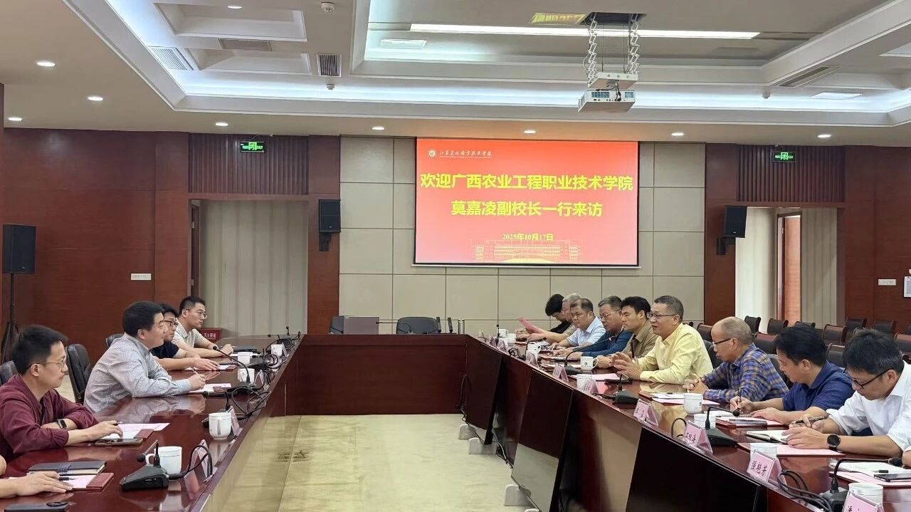 为学习先进办学经验,加快推进我校高水平专业群与现代农业智慧实训基地建设,10月16日至17日,学校副校长莫嘉凌带领学校教务处、科研处负责人,农业生物与工程学院、动物科技学院、海洋与渔业学院、人工智能学院、食品工程学院负责人及学校专家、教师代表一行12人先后赴江苏农牧科技职业学院与江苏农林职业技术学院开展交流学习。