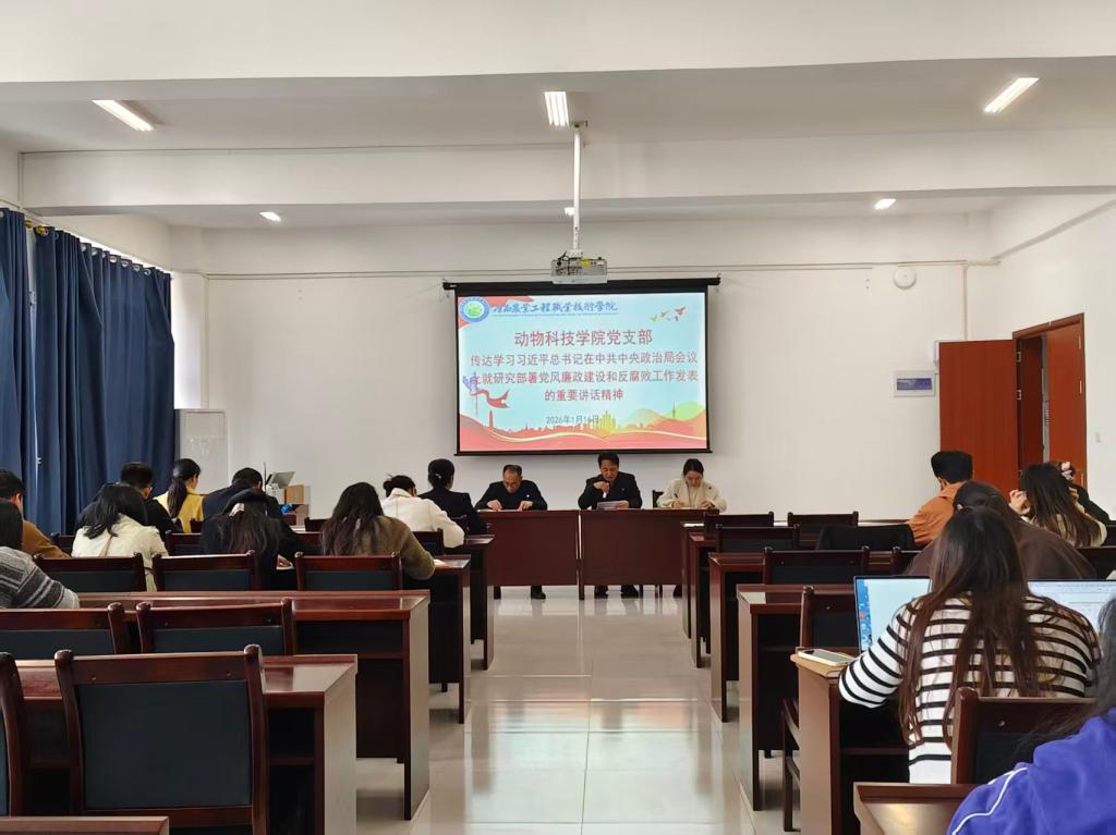 2026年1月17日下午,动物科技学院党支部在10-509会议室先后开展集中理论学习暨主题党日活动,深入学习贯彻习近平总书记重要讲话精神,传承弘扬周恩来同志崇高精神。本次活动由党支部书记李显主持,支部28名党员参与此次活动。