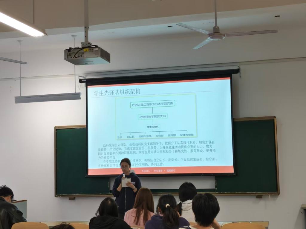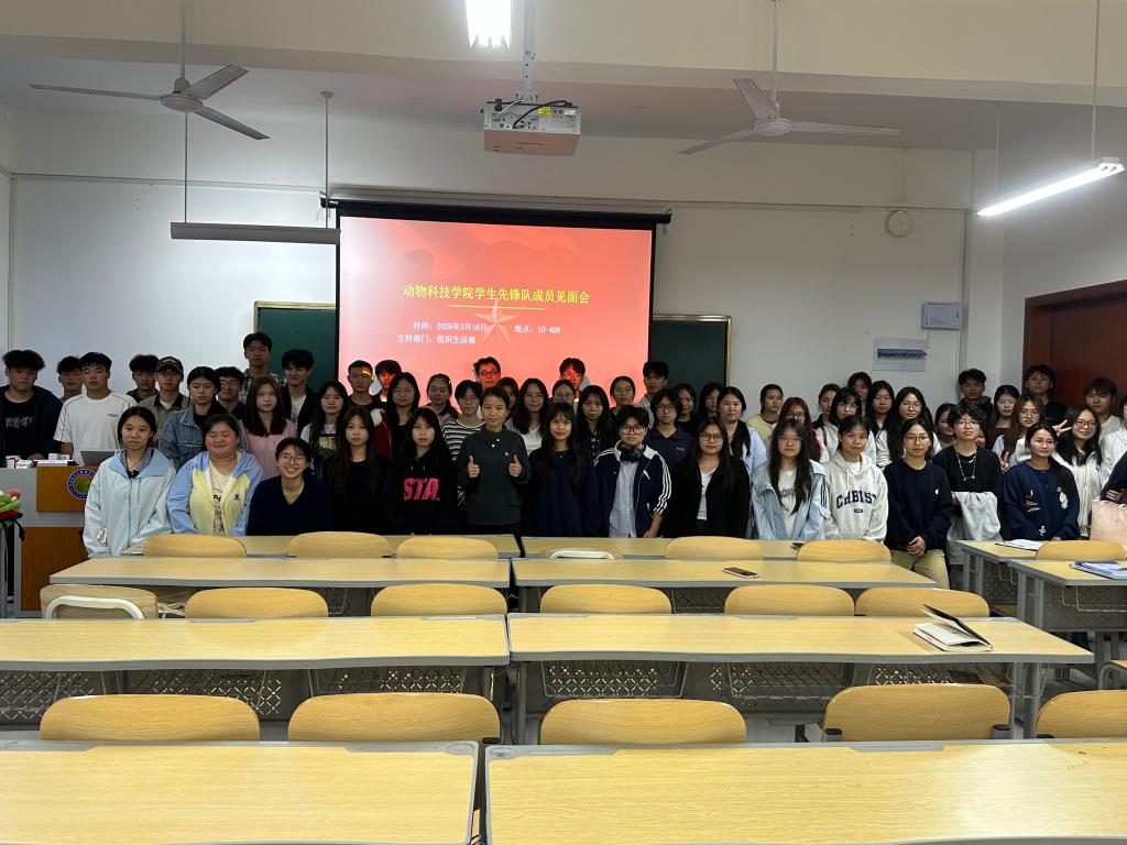2026年3月16日晚,动物科技学院学生先锋队见面会在10-406教室顺利举行。会议由组织生活部主持,先锋队全体成员参会。学院党建组织员甘玉莲老师出席会议并作总结指导,为先锋队后续工作开展明方向、定要求、聚力量。