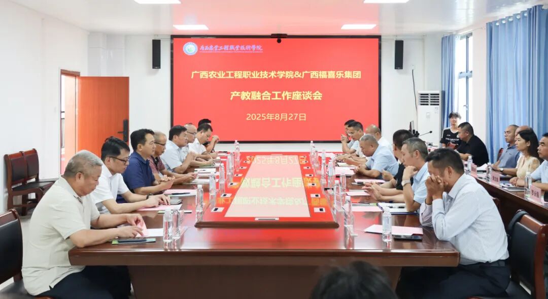 李振科校长首先代表学校对广西福喜乐集团一行的到来表示热烈欢迎,并简要介绍了学校的办学历史、专业布局及人才培养成果。他指出,作为服务广西农业发展的重要职业院校,学校始终聚焦“智慧赋农”特色发展方向,积极探索产教融合新路径、新模式。学校年轻老师占比较高,虽充满活力与潜力,但亟需企业实践资源与行业经验赋能,校企深度合作既是企业发展的现实需求,也是学校提升人才培养质量的迫切需要。 校企双方可通过开设订单班、共建实践基地等方式,真正实现“企业需求导向、校企协同育人”的精准对接,共同培养一批适应农业产业发展需求的高素质技能人才。
