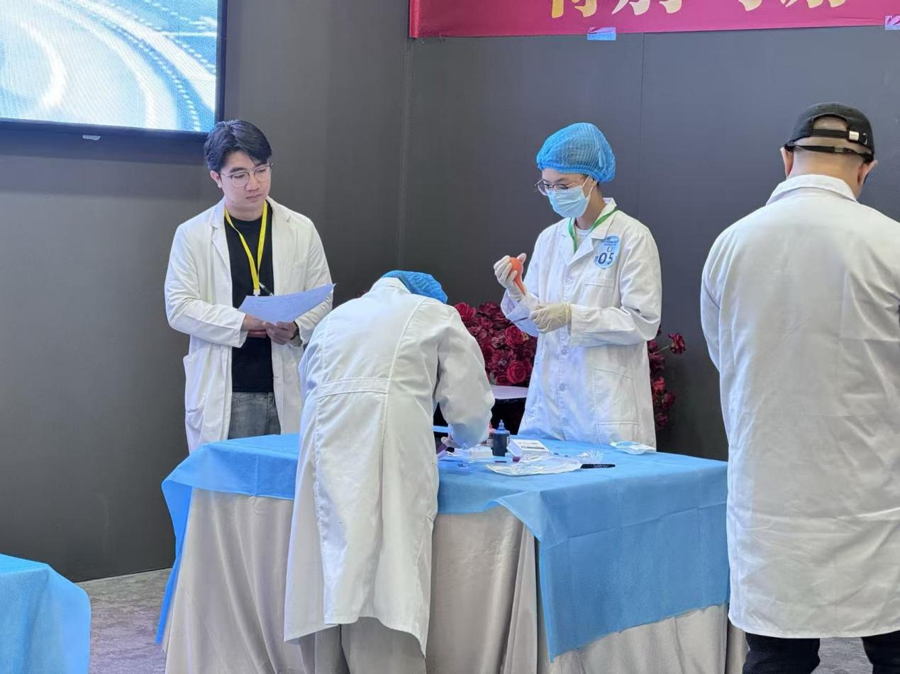 本次大赛以 “模拟宠物医院诊疗” 为核心场景,设置 “血涂片制备与判读”“无菌穿戴与皮肤缝合” 两大实操项目。选手需在 30 分钟内完成全流程操作,既考验专业知识的精准运用,也挑战临场应变能力与团队协作效率。在李佳蓉、刘顺龙、李兰升、杨明洁 4 位教师的专业指导下,我院李茗玥、卢庆宏、覃诗怡、何知卿组成的2支参赛队伍沉着应战、配合默契。他们以规范娴熟的操作流程、精准高效的时间把控,充分展现了扎实的实践技能与良好的专业素养,最终成功拿下 2 项一等奖。