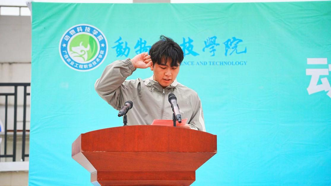 开幕式上,动物科技学院院长李显发表致辞。他强调,体育运动不仅是体能的较量,更是意志与精神的升华。本次院运会为动科学子展示青春风采提供了重要舞台,希望同学们赛出水平、赛出风格,以拼搏精神点燃青春力量。同时,他勉励全体师生在学习与生活中继续保持积极向上、团结协作的态度,共同推动学院发展迈向新高度。随后,运动员代表与裁判员代表分别宣誓。