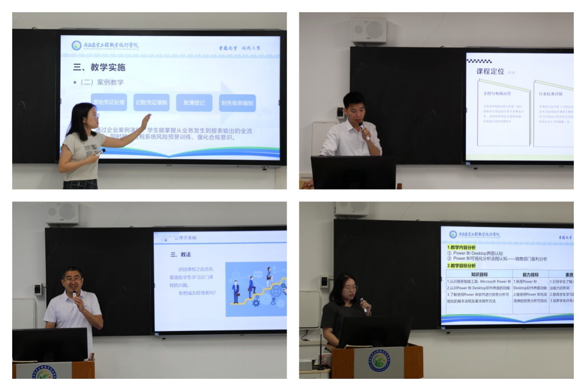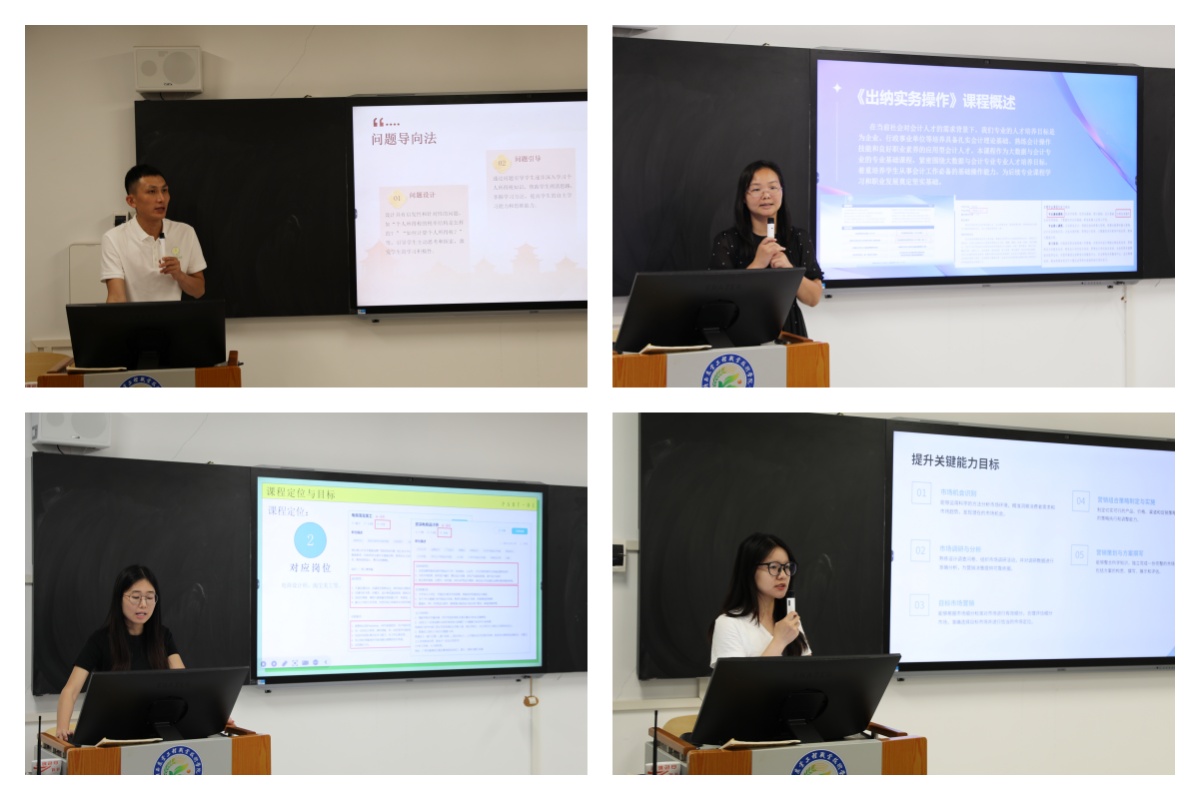 在“说课程”活动中,各课程负责老师从课程定位、课程目标课程思政、教学内容、教学设计、考核方式、教材选用、教学实施、教学反思等方面进行深入浅出的阐述。教师们不仅展示了扎实的专业知识,更体现了对教学方法的创新和思考,既注重知识的传授,又注重学生能力的培养和核心素养的提升。他们分享了如何激发学生的学习兴趣和主动性,以及如何利用多元的评价方式评估学生的学习效果。
