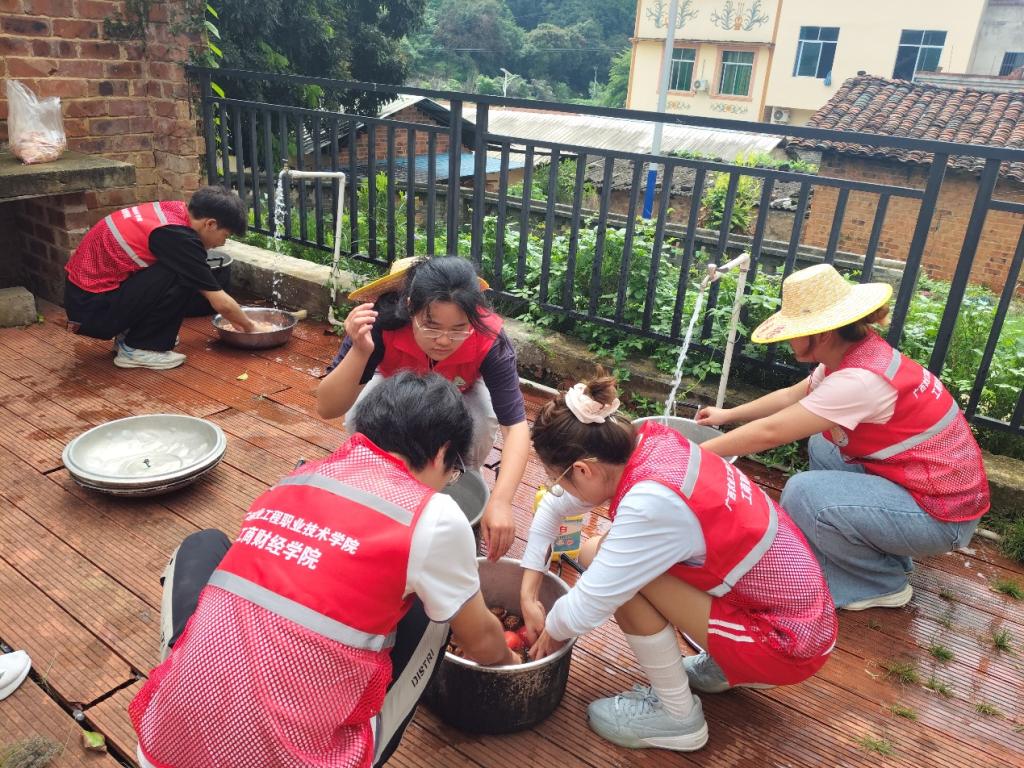 此外,在整个实践活动过程中,用餐均由同学们自己动手制作。大家分工合作,有的清洗餐具,有的洗菜切菜,有的掌勺烹饪,将专业所学运用到实际生活中。这一过程不仅充分发挥了同学们的专业特长,让他们在实践中巩固知识技能,更锻炼了大家的动手能力和团队协作能力,让每一位成员都深刻体会到了劳动的价值与乐趣。
