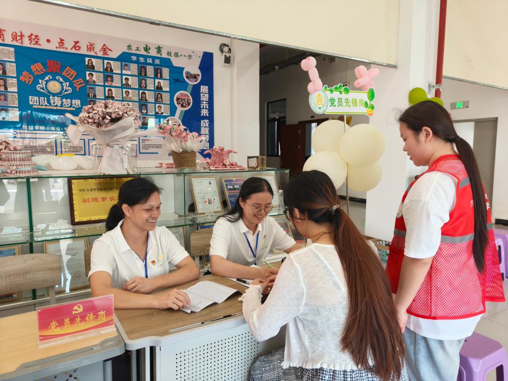 为保障迎新有序进行,充分发挥基层党组织的战斗堡垒和党员的先锋模范作用,9月11日,工商财经学院党支部组织党员教师、学生干部、学生入党积极分子全力投入迎新一线,在四栋大本营报到点设立了“党员先锋岗”,以热情周到的服务为新生顺利开启大学生活保驾护航。