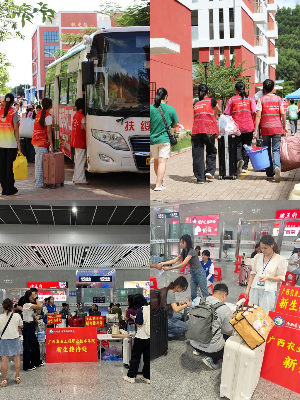 为保障迎新工作高效、有序、温馨地进行,学院在门口大厅设立了集中的新生报到接待点,校外车站接待点,志愿者们身着统一服装,以饱满的热情和耐心的指引,为新生及家长提供从线上资格审核、信息登记到宿舍引导的“一站式”服务。学校还特别开设了“绿色通道”,确保家庭经济困难学生能够无忧入学,充分体现了学校的人文关怀。
