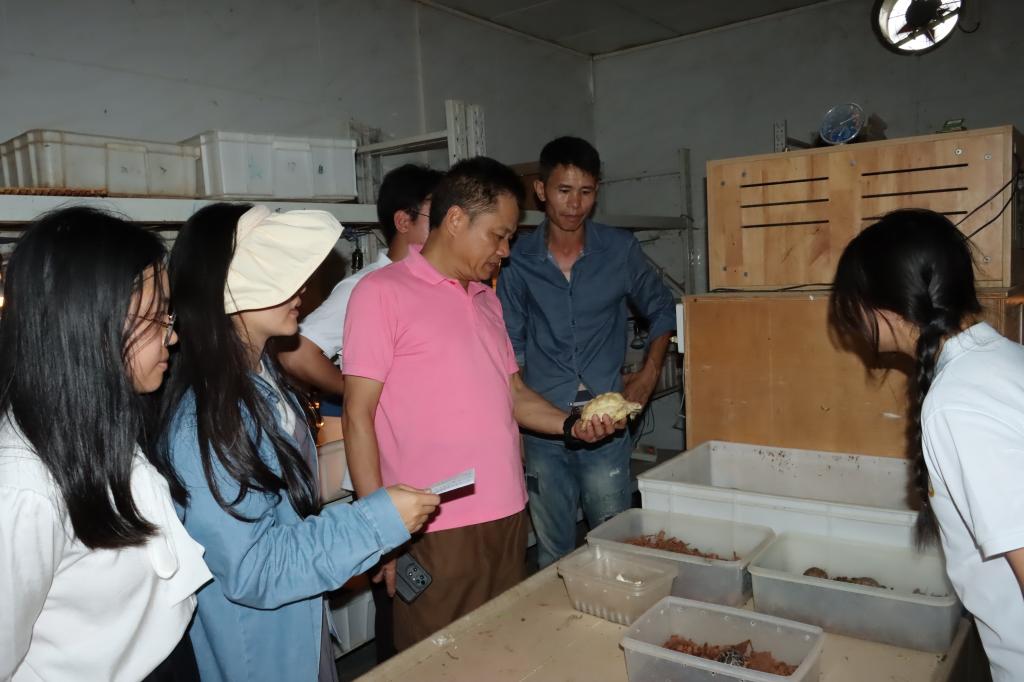 随后,团队前往崇左市圣博农业有限公司进行考察。公司负责人黎明带领师生参观养殖基地,详细讲解包括国家二级保护龟种在内的多品种龟鳖养殖管理模式,为团队提供了宝贵的行业经验。