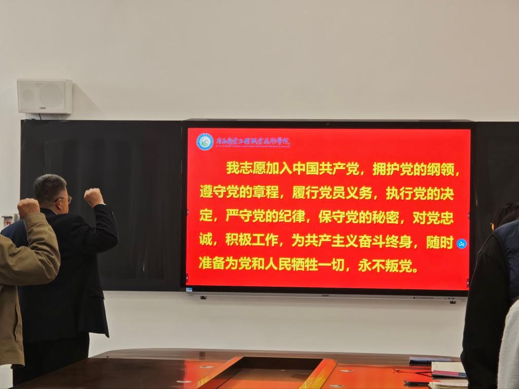 活动伊始,伴随着雄壮的《义勇军进行曲》,全体党员、入党积极分子肃立齐唱国歌,激昂旋律点燃心中的爱国热忱;随后,在党支部书记农新闻的带领下,大家高举右拳、庄严宣誓,重温入党誓词,铮铮誓言铿锵有力,既是对入党初心的回望,更是对水产人使命担当的重申。