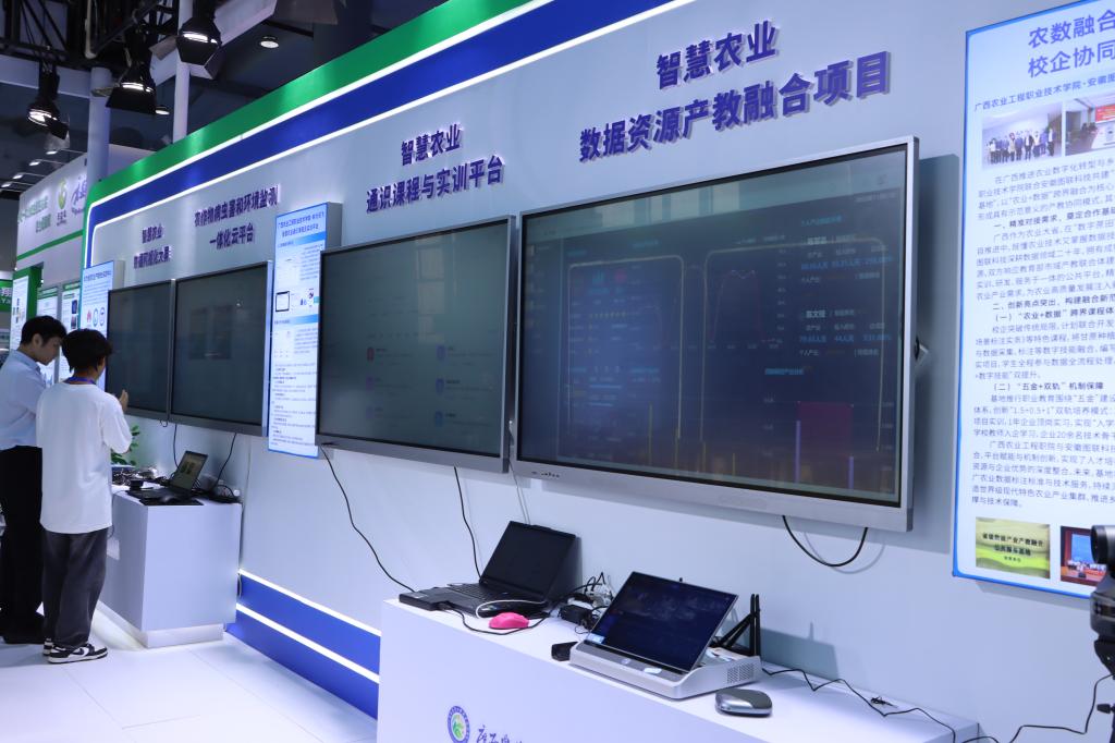 11月6日,由农业农村部对外经济合作中心主办,自治区农业农村厅和南宁市人民政府承办的2025智慧农业博览会在南宁开幕。本届展会以“智造农业数联乡村”为主题,为期三天,汇聚10余个国家200余家参展商、23个国家专业采购商团组及近2万名观众,集中展示全球智慧农业前沿成果。广西农业工程职业技术学院紧扣国家乡村全面振兴战略与广西农业强区建设部署,携核心创新成果与产教融合实践案例参展,以“AI 赋能农业教育、产教融合服务振兴”为核心,在国际化展会平台上,学校通过技术推广与国际合作彰显服务乡村全面振兴的使命担当,依托前沿成果转化与产学研协同创新凸显学科核心竞争力。