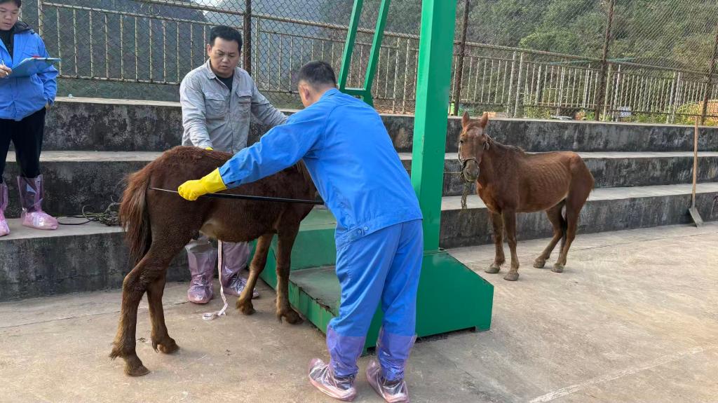 11月14日至16日,我校动物科技学院院长及客座教授一行4人,与另外两所高校的专家团队协同作业,在德保县马隘镇马牌村集中开展马屠宰性能测定及采样实验。专家团队严格遵循项目技术规范,高效完成德保矮马屠宰性能指标测定、多类型组织样本采集等关键任务,所获数据与样本为后续解析矮马优良性状遗传基础、构建种质保护技术体系提供了核心支撑。