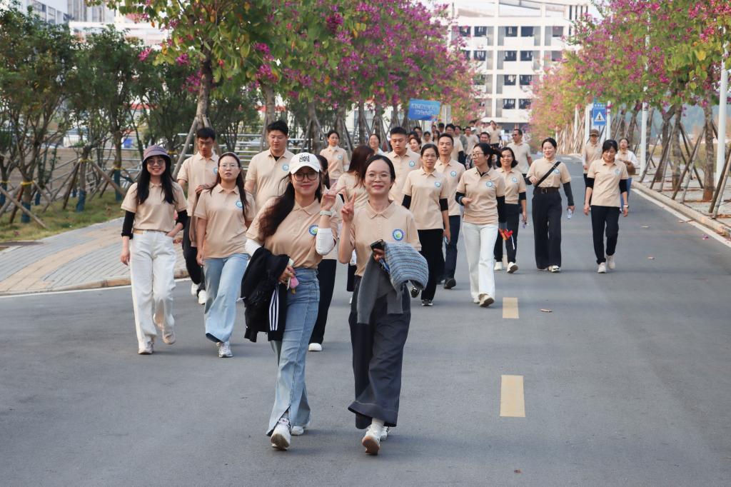 随着活动正式开始,全体教职工精神抖擞地踏上环校园健步走征程。沿途的教学楼、实验室、景观区留下了大家的身影,欢声笑语中洋溢着对校园的热爱、对工作的热忱。