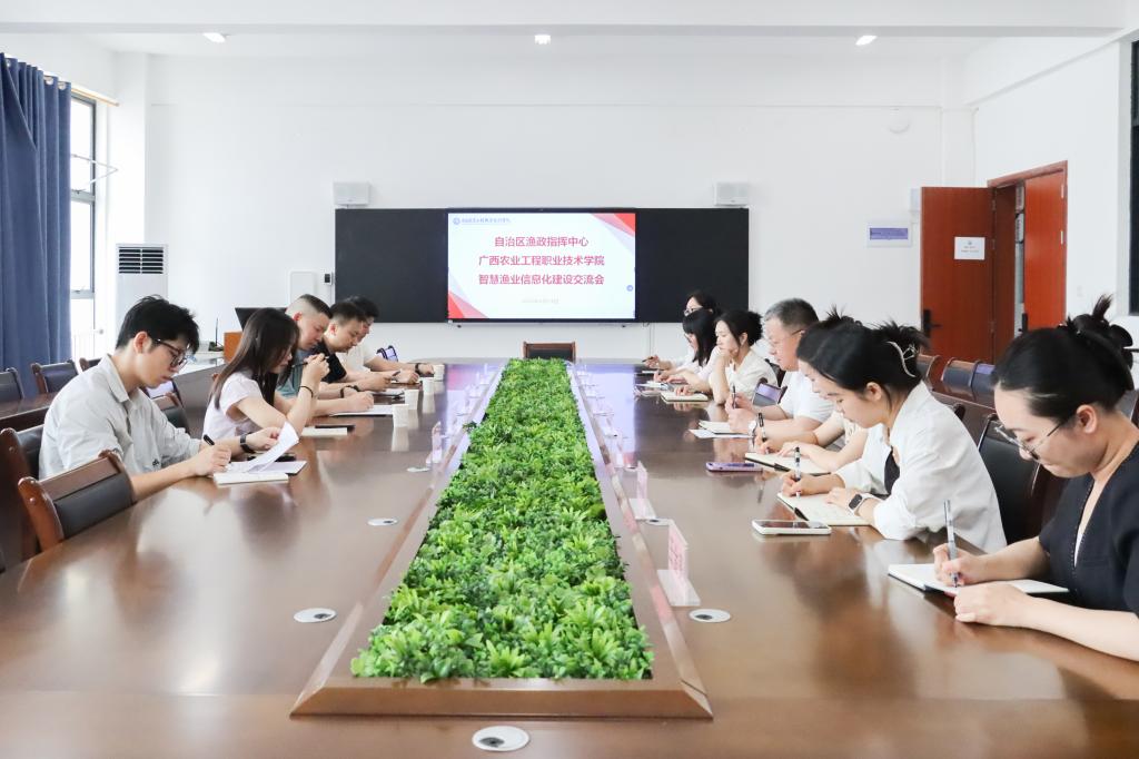 学校海洋与渔业学院副院长农新闻详细介绍了学院的基本情况,围绕专业布局、师资条件、实训平台、学生培养等方面进行了说明。他表示,学院期待以此次交流为契机,主动融入全区智慧渔业发展大局,实现校地协同、合作共赢,共同为广西现代渔业高质量发展贡献力量。