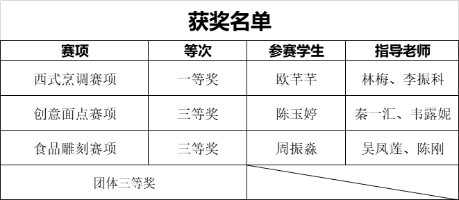 此次成绩的取得,是我校持续推进“岗课赛证”综合育人模式改革、深化产教融合成果的生动体现。未来,食品工程学院将继续坚持以赛促教、以赛促学、以赛促建,不断提升专业建设水平与人才培养质量,为服务区域餐饮产业升级和推动职业教育高质量发展贡献更多力量。