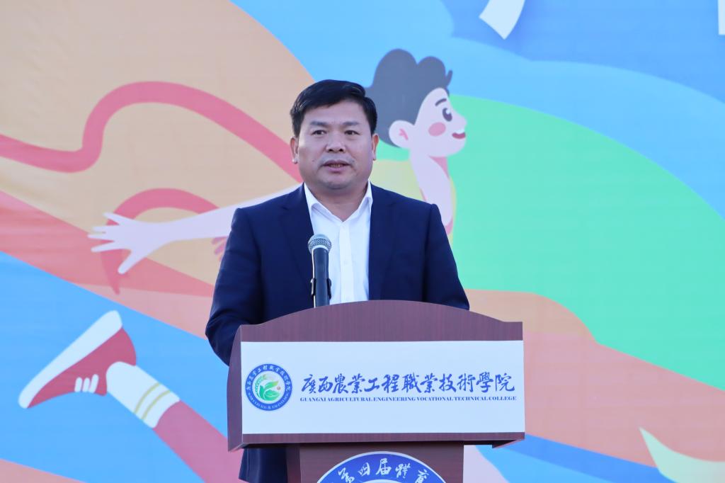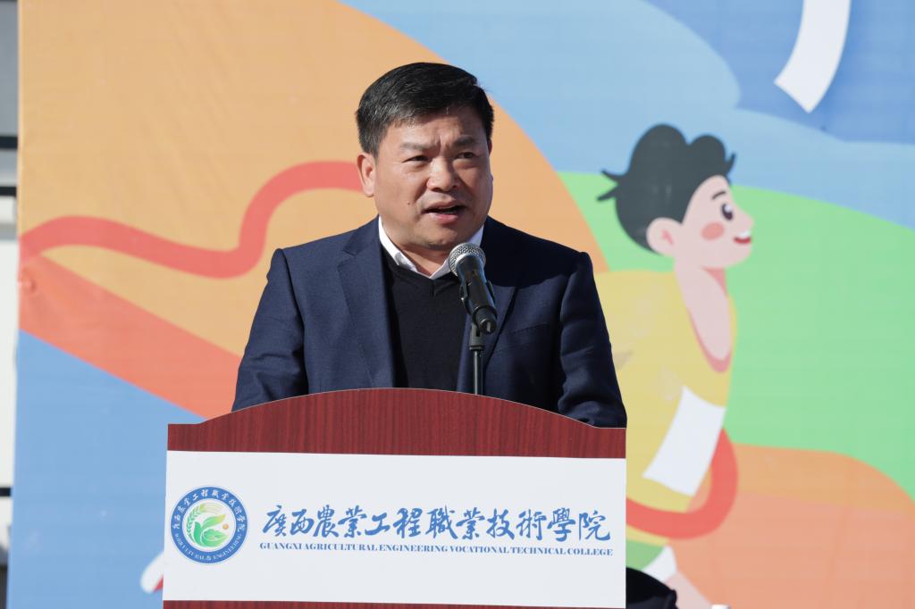 11月20日上午,运动会正式拉开序幕。学校党委书记马敏,党委副书记、校长李振科,副校长李祖培,副校长莫嘉凌,总会计师韦炜出席开幕式,全体教职工及全体在校学生参加了开幕式。党委副书记、校长李振科为运动会开幕式致辞,他在致辞中表示,学校将坚持不懈用习近平新时代中国特色社会主义思想铸魂育人,扎实落实立德树人根本任务,坚持德、智、体、美、劳五育并举,不仅传授专业知识与技能,更注重培养吃苦耐劳的职业素养、终身学习的综合能力与服务三农的责任担当。他希望全体运动员以饱满的热情、昂扬的斗志投入到比赛中,牢记“友谊第一、比赛第二”的精神,遵守比赛规则,服从裁判指挥,注意比赛安全,在赛场中展现农工院学子奋勇争先、团结协作的体育道德风尚,将运动激情转化为深耕农业、科技兴农的奋进力量。随后,在全体师生的热烈掌声中,党委书记马敏宣布广西农业工程职业技术学院第四届运动会正式开幕!