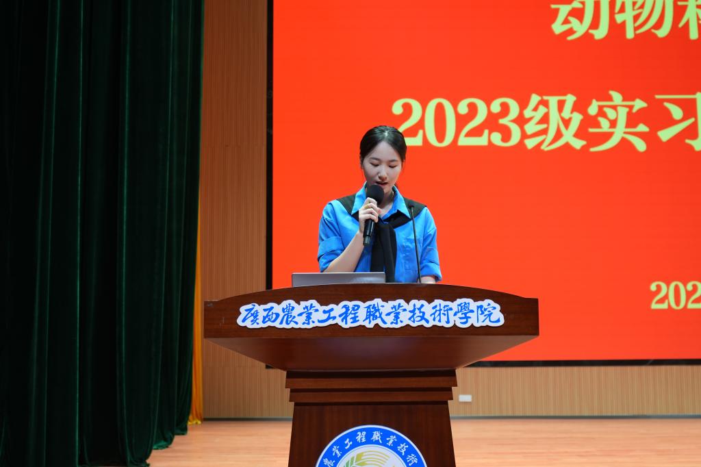 动物科技学院院长李显在发言中强调,实习是连接校园与职场的重要桥梁,是检验学习成果、提升实践能力的关键环节。他勉励全体同学牢记实习使命、端正态度,坚持知行合一,把专业知识转化为实操能力,以扎实作风完成实习任务。
