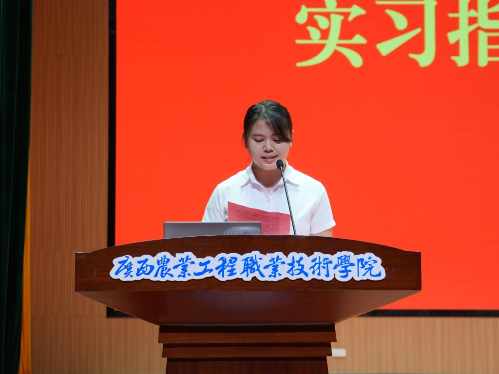 会上,2023级实习生代表宁爽同学结合自身经历,分享了实习中的收获与成长感悟,勉励同学们珍惜机会、主动历练。2024级学生代表邓倩莎同学作表态发言,展现出认真实习、勤学苦练的坚定决心。就业指导老师围绕专业提升、职业素养等方面做动员讲话,引导学生在实践中锤炼本领、增长才干。