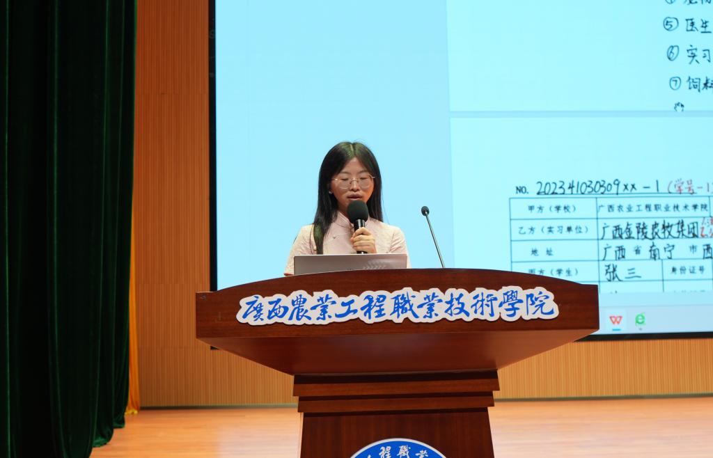 为保障实习规范推进,大会设置实习协议填写与实习管理培训环节。动物科技学院实习就业科陈鑫老师详细解读实习协议条款、填写规范及权益保障要点,帮助学生明晰流程、防范风险,确保实习工作依法依规、平稳落地。