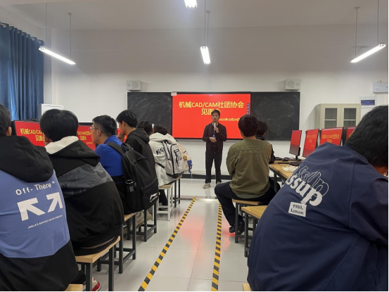 见面会伊始,苏元多老师从宏观行业视角出发,结合当前制造业数字化、智能化的发展趋势,深入浅出地阐述了掌握CAD/CAM技术对于机械类专业学生未来职业发展的关键作用。他指出,CAD/CAM技术是现代制造业的通用“语言”和核心工具,熟练运用这项技术是同学们未来在职场竞争中脱颖而出的重要筹码。苏老师鼓励同学们要珍惜协会这个宝贵的第二课堂平台,勤学苦练,勇于实践,将课堂上的理论知识与平台上的实践操作紧密结合,为未来的职业生涯奠定坚实的基础。