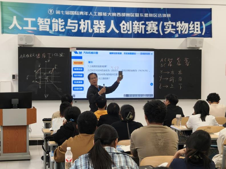 本次公开课由覃聪老师主讲。覃老师凭借其在汽车机械识图领域深厚的学术积淀和丰富的教学经验,为现场师生呈现了一堂生动精彩的示范课。授课过程中,覃老师以幽默风趣的教学语言,巧妙运用各类有效教具,极大地激发了学生的学习兴趣,引导同学们全神贯注投入课堂。整堂课气氛活跃,学生参与讨论积极,展现了良好的师生互动和浓厚的学术探索氛围。