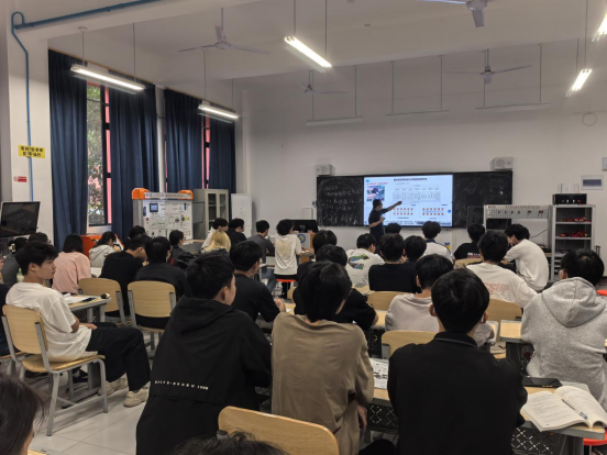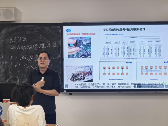 在教学实施过程中,郑冰松老师注重理论联系实际,通过在企业遇到的真实案例阐释数据通信在电池管理系统中的重要性以及故障诊断的主要方法。他详细解析了CAN通信技术原理及其对车辆运行的影响,引导学生理解理论知识的实际应用场景。课堂中穿插提问与互动,启发学生思考,体现了“以学生为中心”的教学理念。