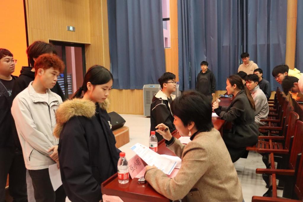 陈宏昌副院长强调,订单班是我院深化校企合作、服务区域产业升级的关键举措。订单班打破了传统人才培养与产业需求间的壁垒,通过“校企共育、双师共训”的机制,将企业先进的技术标准、生产流程和职业素养要求深度融入教学过程,实现人才供给侧与产业需求侧的同频共振。这不仅为我院学生提供了系统化的职业技能训练和清晰的职业发展通道,也为海天集团等龙头企业储备了适配度高、技术扎实的后备力量,是推动教育链、人才链与产业链深度融合的生动实践。现场,企业招聘团队对意向学生进行了面试,同学们携带简历,准备充分、有序参与,展现出良好的专业素养与精神风貌。