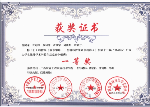 一等奖:《履带攀峰——全地形智能除草机器人》项目