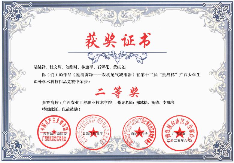 二等奖:《氨消雾净——农机尾气减排器》项目
