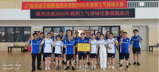 2025 年 4 月 17 日,我校 2025 年教职工气排球比赛圆满落幕。在此次比赛中,机电工程学院工会小组凭借团结协作的精神和奋勇拼搏的斗志,在激烈的角逐中脱颖而出,荣获第七名,充分展现了学院教职工积极向上的精神风貌和良好的体育竞技水平。