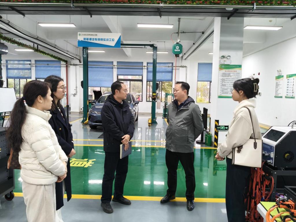 2025年11月19日,机电工程学院新能源汽车检测与维修技术教研室主任郑冰松一行前往广西自然资源职业技术学院机电工程学院新能源汽车检测与维修技术融创教学团队(以下简称融创团队)开展交流学习活动。双方围绕人才培养模式创新、实训教学、学生实习、技能比赛等核心议题进行了深入探讨。