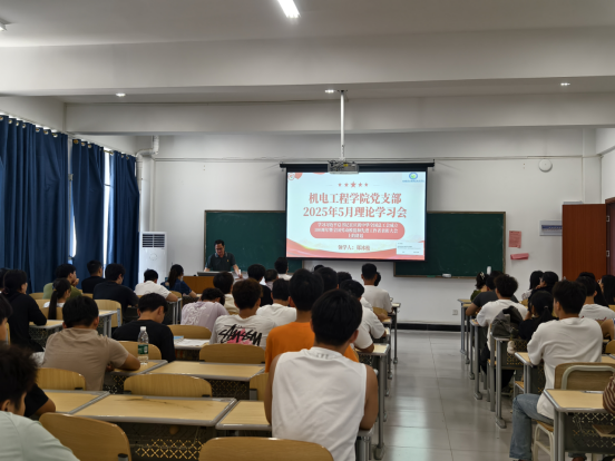 2025 年 5 月 15 日 12 时20分,机电工程学院党支部在 12 栋教学楼 510 教室召开 5 月份理论学习会。本次会议重点学习习近平新时代中国特色社会主义思想及党的重要精神,旨在提高党员干部的政治素养和理论水平。本次学习由郑冰松领学,全体党员、发展对象及入党积极分子参与学习。