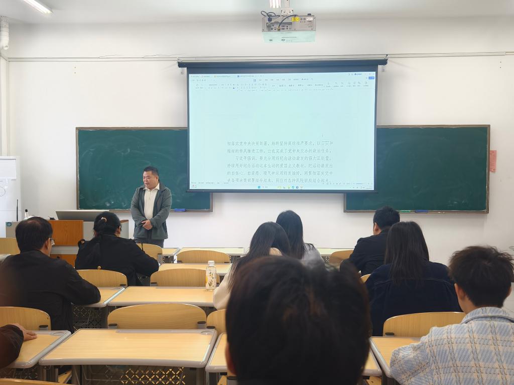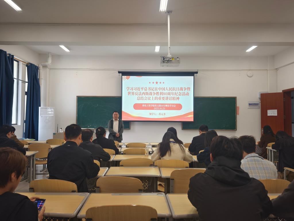 10月23日中午,机电工程学院党支部在12栋510教室召开2025年10月理论学习会。支部全体党员、发展对象及入党积极分子共40余人参加,会议由支部党员苏元多领学。