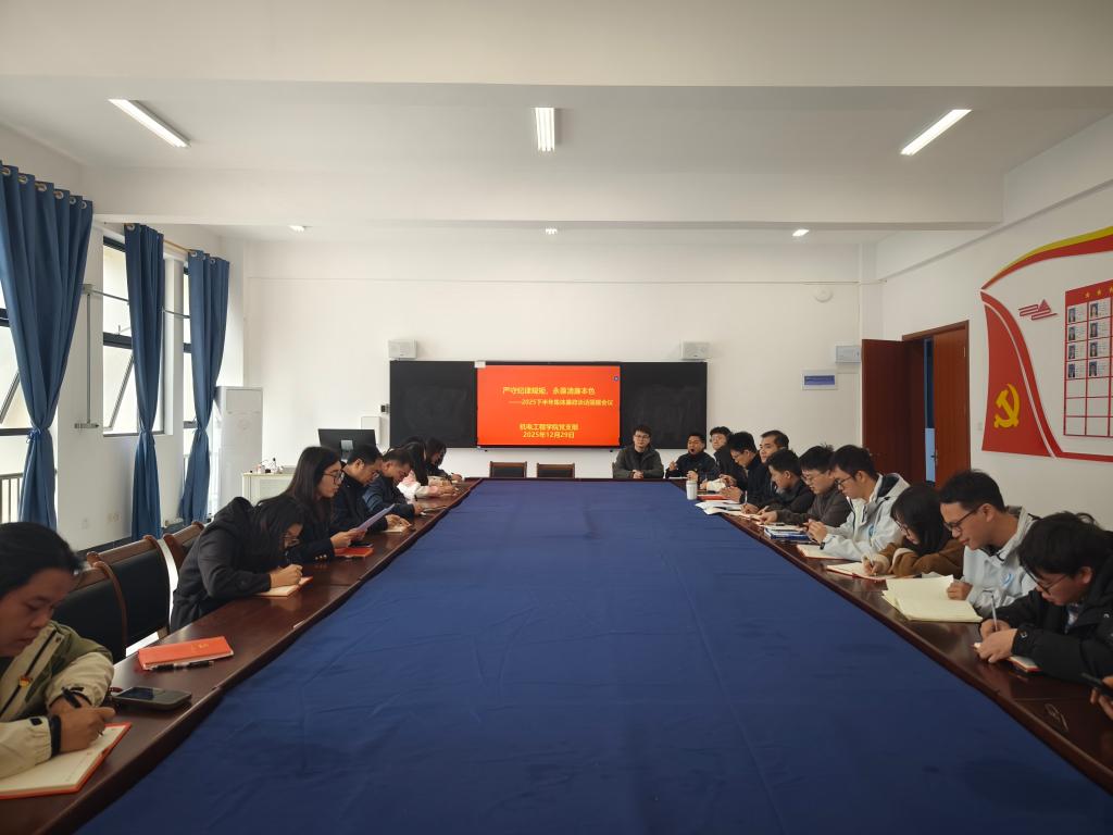 为深入贯彻落实全面从严治党要求,进一步强化党员纪律意识、规矩意识和廉洁意识,2025年12月29日中午,机电工程学院党支部在12栋教学楼508会议室召开集体廉政谈话会议。党支部书记林兴兰主持会议并进行主讲谈话,党支部全体党员、发展对象及入党积极分子参加会议。