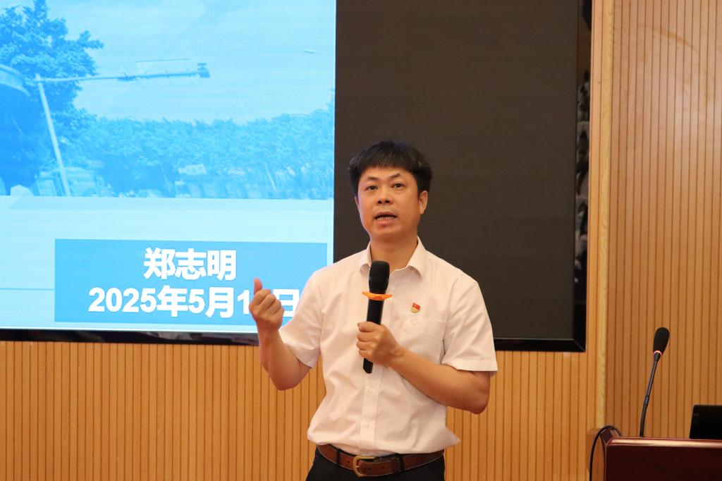 报告会上,郑志明用质朴的语言讲述了自己从一名普通钳工成长为全国技术能手的技能成功之路,生动诠释了“终身学习”与“持续精进”的深刻内涵。作为党的二十大代表,郑志明分享了大会期间与习近平总书记对话的难忘场景,他激励同学们,要刻苦钻研技能,以精湛技艺为祖国发展贡献力量。他还介绍了其国家级技能大师工作室的运行模式与人才培养成果,通过“传帮带”的培养模式,工作室已成功培育 32 名高技能人才,17 项创新成果应用于生产一线,有效解决了多个“卡脖子”技术难题。