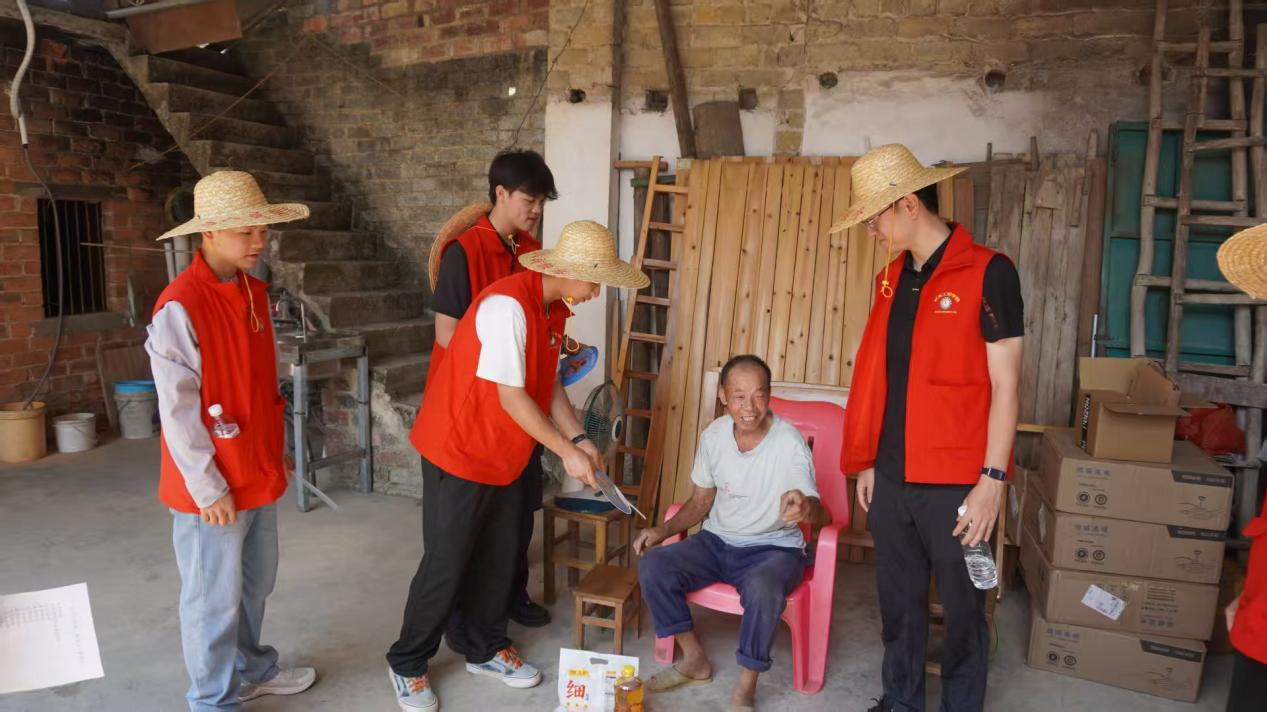 7月5日,在村主任的引领下,带队老师与志愿者们带着精心准备的面条、食用油、大米等慰问品,走访慰问村内孤寡、留守老人。每到一户,大家都与老人促膝交谈,关切询问身体状况、生活起居及实际困难,耐心倾听老人心声,用贴心关怀温暖老人心田。老人们脸上洋溢着幸福的笑容,对志愿者们的到来和帮助表达由衷的感谢。