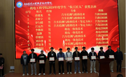 大会现场,举行了庄重而热烈的颁奖仪式,“十佳大学生”“农工匠人”以及第二届全国大学生职业规划大赛院级选拔赛的获奖同学依次登台领奖。这些优秀学子以实际行动彰显了机电工程学院大学生矢志不渝听党话、跟党走的坚定信念,尽显怀抱远大理想又脚踏实地的青春风采,他们的拼搏故事,如同一束束光,激励着全体青年学生立志成为有理想、敢担当、能吃苦、肯奋斗的新时代先锋。