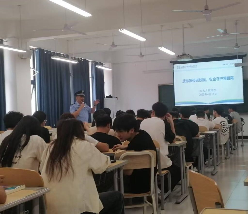 为有效提高师生的防范电信网络诈骗意识和能力,营造安全和谐的校园环境,2025年4月18日上午,机电工程学院开展了以 “反诈宣传进校园,安全守护零距离” 为主题的系列反诈宣传活动。