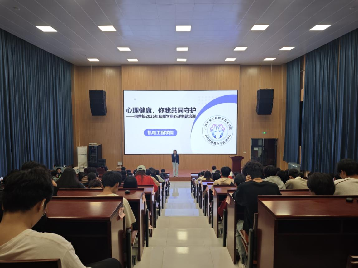 为巩固校园心理健康工作基础,提升宿舍长心理服务意识与能力,机电工程学院于2025年12月2日举办2025-2026学年秋季学期宿舍长心理专题培训。各年级宿舍长参与次次培训,学院辅导员温冰朋担任主讲。