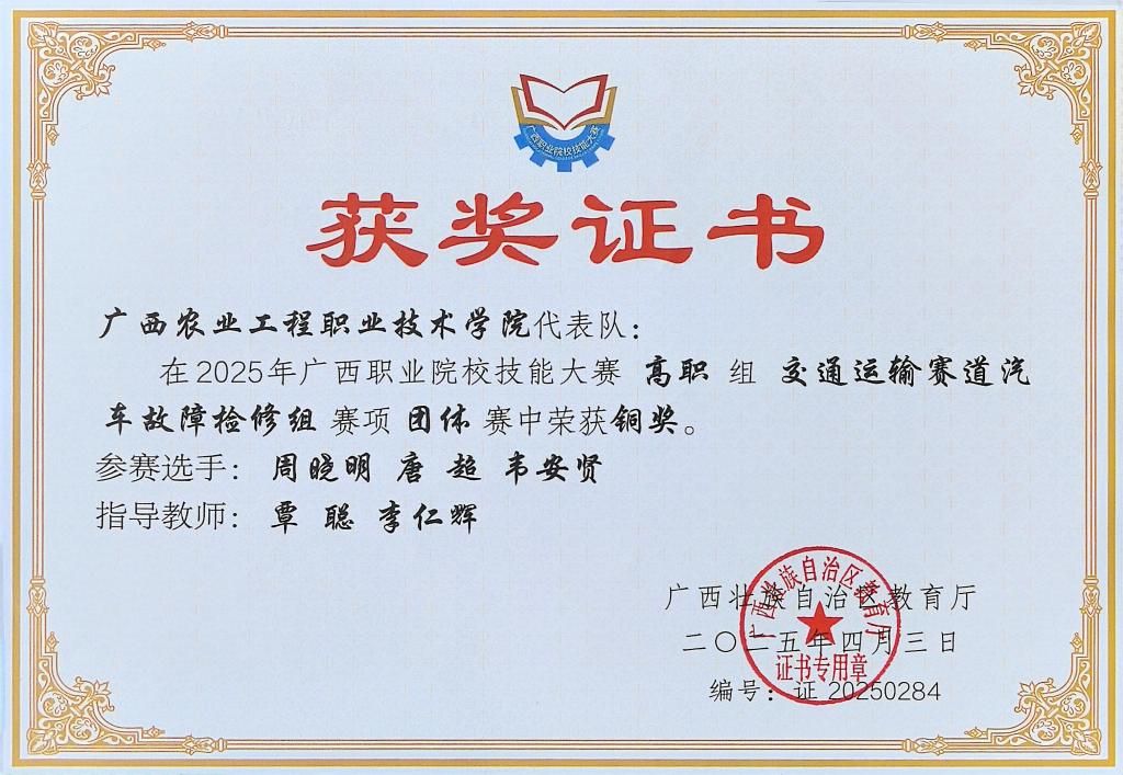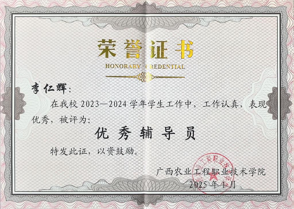李仁辉,中共党员,机动车检测维修工程师,机电工程学院专任教师,自治区技术能手。担任《汽车发动机构造与维修》《汽车底盘构造与维修》等多门专业核心课的授课任务。参与自治区教改课题1项,中青年课题2项,校级课题3项,发表论文2篇。2023年度考核优秀,2024年优秀共产党员、教学质量优秀奖。参加第四届全国新能源汽车关键技术广西选拔赛汽车维修检验工(智能载运综合技术方向)获一等奖。指导学生参加比赛,获得国家级比赛三等奖1项,自治区级比赛二等奖2项,三等奖6项。