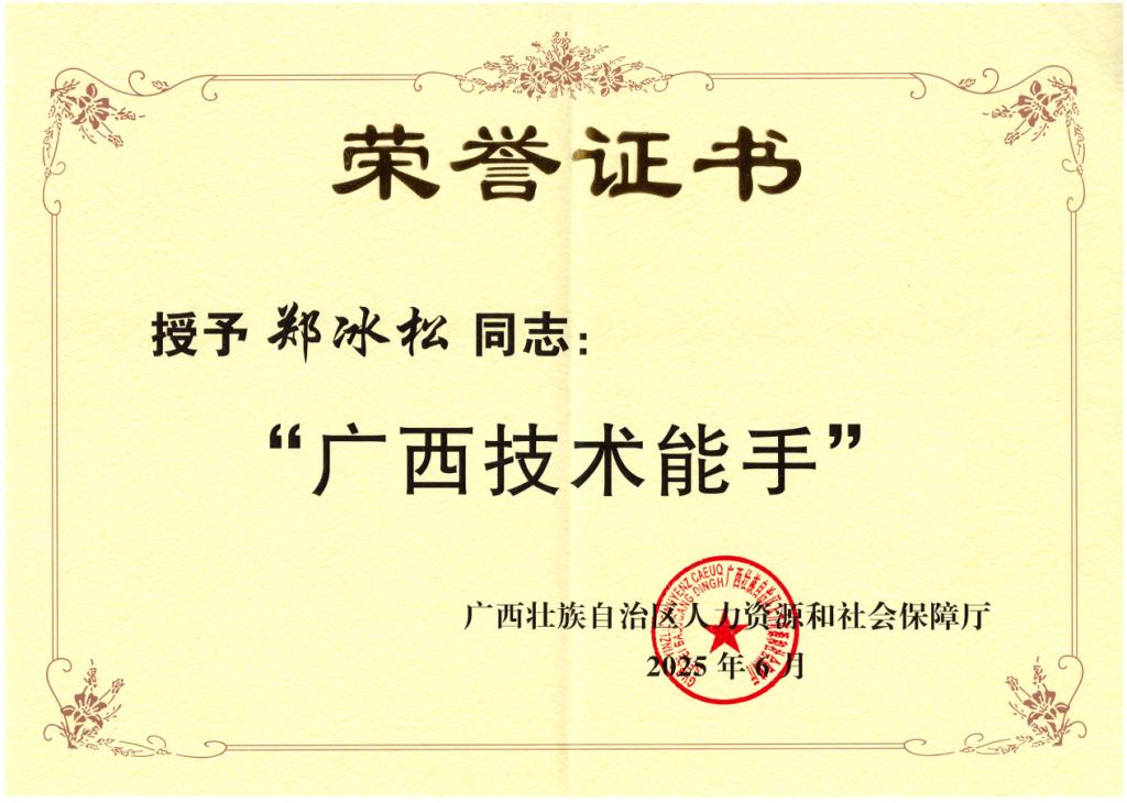 郑冰松,中共党员,高级工程师,机电工程学院副院长、新能源汽车专业负责人,广西技术能手。职业技能比赛国赛一等奖1项,省级一等奖1项和省级三等奖1项;指导学生技能比赛,获国家一等奖1项,三等奖1项,省级二等奖3项,三等奖6项;获学校2023年秋、2024年春、2024年秋学期教学质量优秀奖;获2023-2024年度优秀班主任,2025年度优秀教师;主持教改及科研项目3项,参与完成广西地方计量标准1项;发表论文8篇,获得实用新型专利3项,软著专利5项。