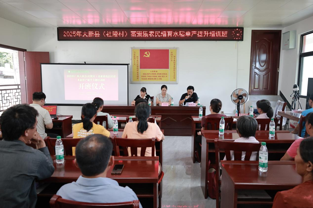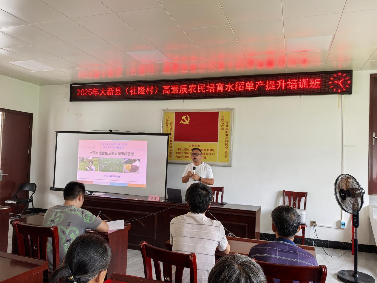 2025年9月17日至29日,大新县高素质农民水稻单产提升专题培训班在社隆村顺利举办,为当地水稻产业高质量发展注入新活力。本次培训以提升水稻单产为核心,以知识传递与技术推广为双翼,助力农业现代化进程迈出坚实步伐。