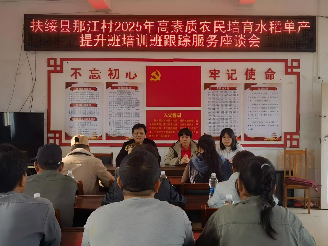 为巩固2025年高素质农民培育成效及助力农民日常生产发展,广西农业工程职业技术学院近日协同扶绥县、宁明县、大新县、隆安县、龙州县、凭祥市农业农村局开展“2025年本级县市高素质农民培训班跟踪服务活动”。由我校乡村振兴学院(教育与培训中心)牵头,组建专项服务团队,深入各个培训地开展精准技术帮扶,累计服务高素质农民、生产带头人、农机手等277人次,超过培训人数30%以上。