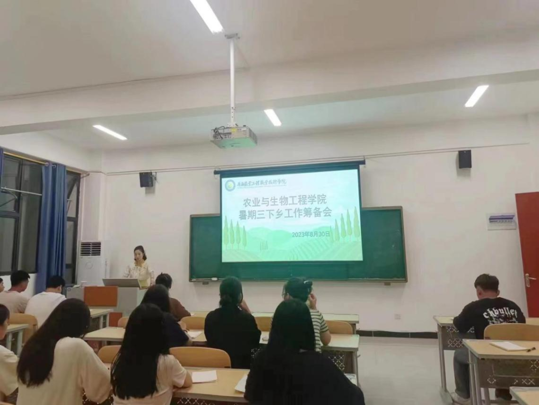 为保证此次前往崇左市天等县福新镇黎亮村开展为期4天(8月31日-9月3日)的社会实践活动能够顺利进行,8月30日,我院开展了暑期“三下乡”工作筹备会,农业与生物工程学院学生会指导老师陈贤珍重点讲解下乡的各项安全工作、人员及活动安排,她强调:各队员在活动中需时刻牢记“提高安全意识,紧记安全宗旨,注意人身安全”。李嘉、张愿老师分别对下乡期间的调研活动进行了工作布置。