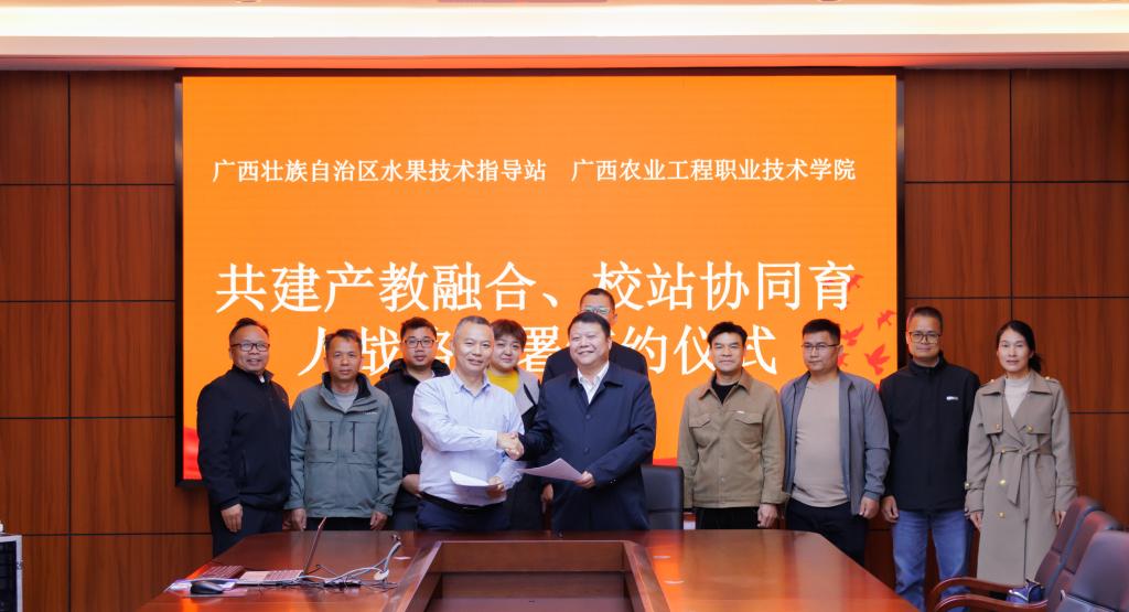 3月19日,学校党委书记马敏带队前往广西壮族自治区水果技术指导站就双方共同创建我校开放型区域产教融合实践中心展开深入交流,并顺利举行签约仪式。副校长莫嘉凌及农业与生物工程学院教师代表参加本次仪式。