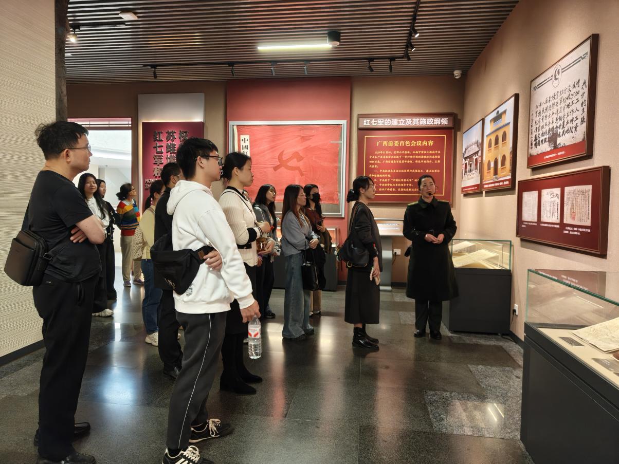 在讲解员的深情讲述下,工作室成员们仿佛穿越时空,回到了那个风雷激荡的年代。大家驻足在起义前夕紧张筹备的展陈前,凝望红七军使用过的简陋武器与生活用品,细细研读革命先辈的手迹与誓言,深刻体会到早期共产党人在民族危亡、时局艰难之际,所秉持的坚定理想信念与百折不挠的革命意志。右江苏维埃政府的成立、土地革命的开展、少数民族同胞的踊跃支持……每一个历史细节都生动诠释了中国共产党为人民谋幸福、为民族谋复兴的初心使命。