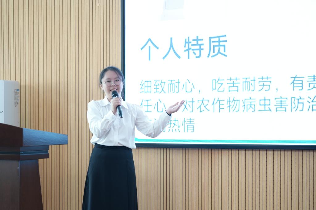 随后,路演比赛正式开始。来自现代农业技术、植物保护与检疫技术、园艺技术专业共计31名参赛选手依次登台,他们围绕个人职业目标、能力分析、发展路径及行动计划等内容,进行 5 分钟路演展示。选手们结合专业特色与行业趋势,以清晰的逻辑、生动的案例和自信的表达,展现了当代大学生对职业规划的深入思考。随后,评委团针对选手的规划合理性、可行性及现场表现进行2分钟提问,选手们沉着应对,与评委展开深度互动。
