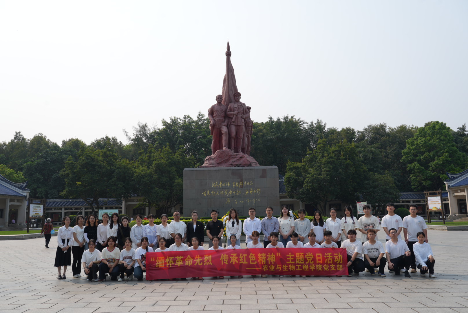 为大力弘扬爱国主义精神,深切缅怀革命先烈的丰功伟绩,传承红色基因、赓续红色血脉,4月12日上午,农业与生物工程学院党支部组织全体党员、发展对象以及入党积极分子前往南湖公园南岸李明瑞、韦拔群革命烈士纪念馆,开展“缅怀革命先烈 传承红色精神”主题党日活动。