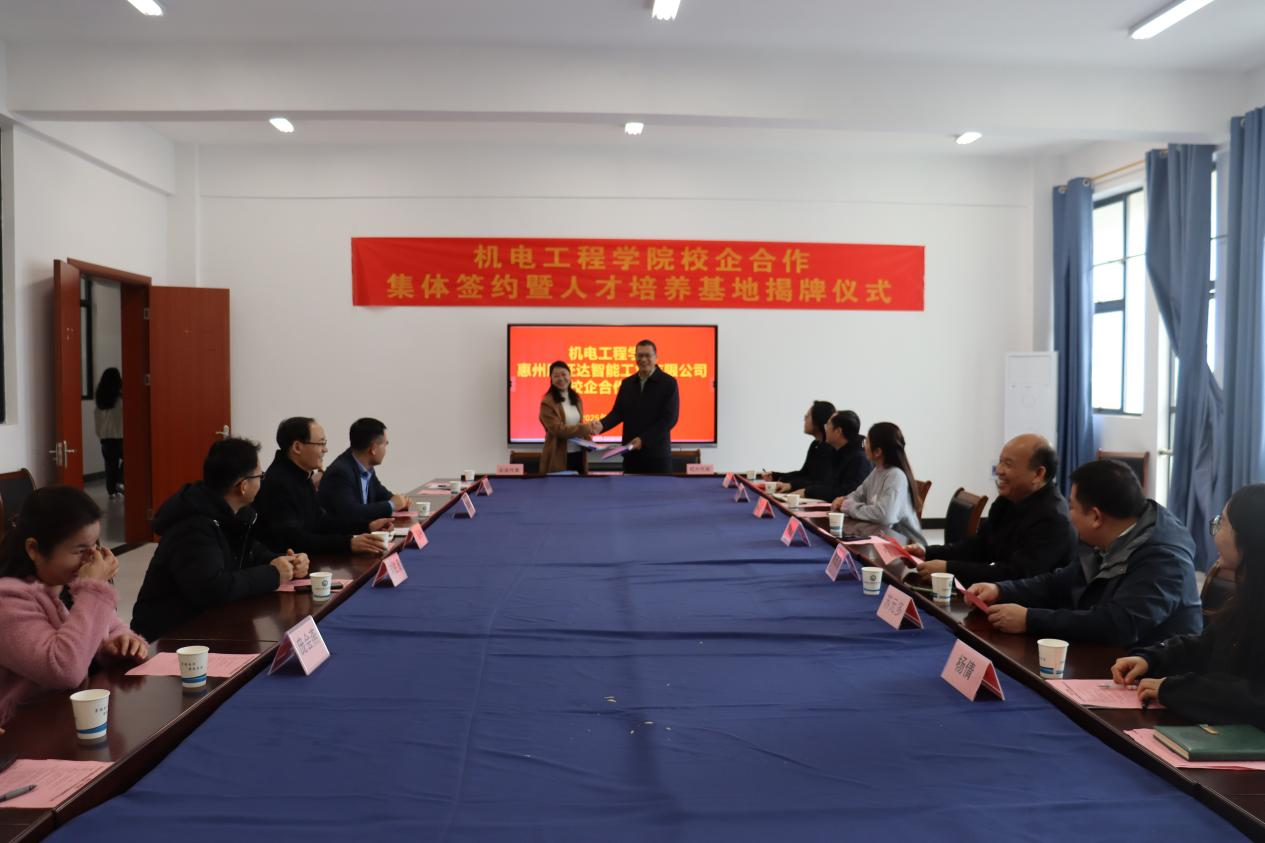 11月19日上午,我校机电工程学院校企合作协议签订暨人才培养基地揭牌仪式在12栋教学楼举行。