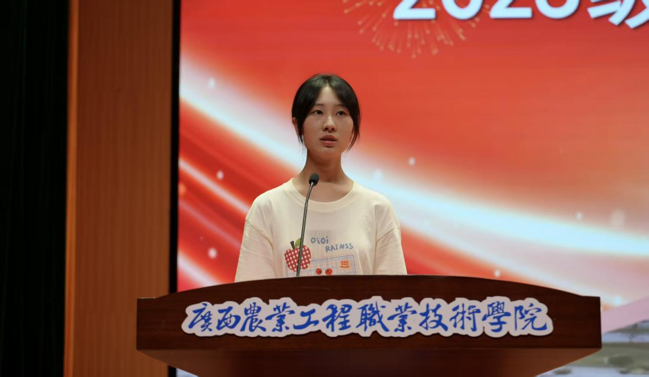 来自山东枣庄的25级新生代表任鑫同学在发言中表达了対大学生活的美好憧憬,并代表全体新生承诺,将以“勤学、修德、明辨、笃实”为准则,积极适应大学生活,努力成长为符合行业需要的人才。这种新老学生间的交流与传承,为新生提供了宝贵的经验借鉴。