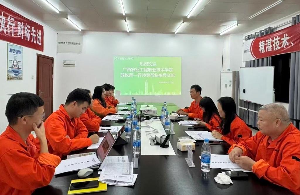 为进一步深化校企合作,精准把握学生实习与就业动态,10月23日至24日,我院副院长苏乾莲、客座教授吴柱月、实习就业干事陈鑫及实训基地管理员谭明旺一行四人赴贺州市京基智农时代有限公司(以下简称“贺州京基智农”)开展实习生慰问工作,实地考察企业生产与生活环境,并与企业代表围绕校企合作深化、实训基地建设等核心议题展开深度座谈。
