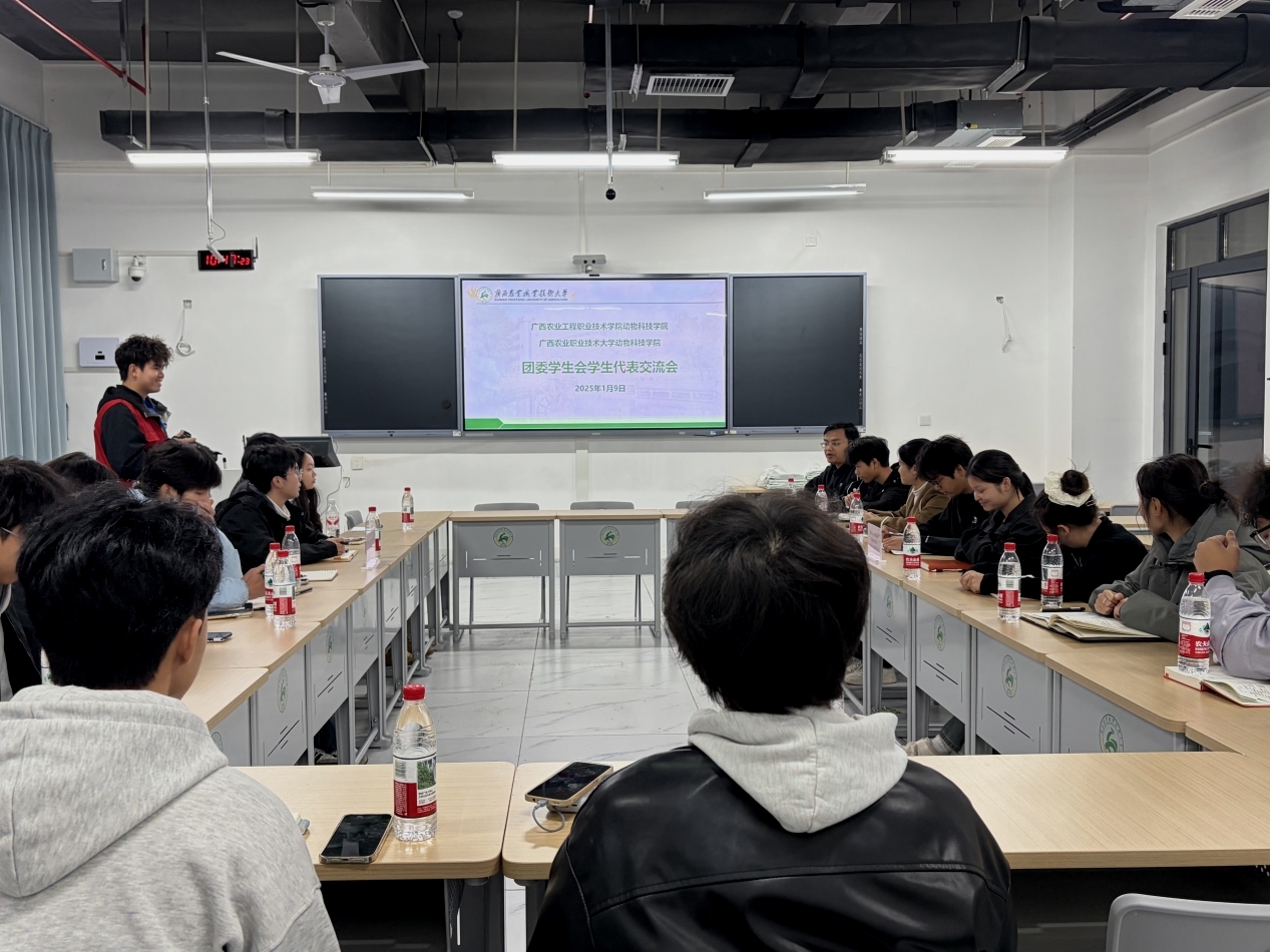 为加强校际合作,提升学生管理与服务效能,2026年1 月9日,我院学生工作办公室全体老师赴广西农业职业技术大学动物科技学院(以下简称 “农职大动科院”)开展交流学习活动。本次活动旨在通过深入座谈、业务研讨与实地参观,借鉴先进经验,进一步优化学生教育、管理及服务工作。